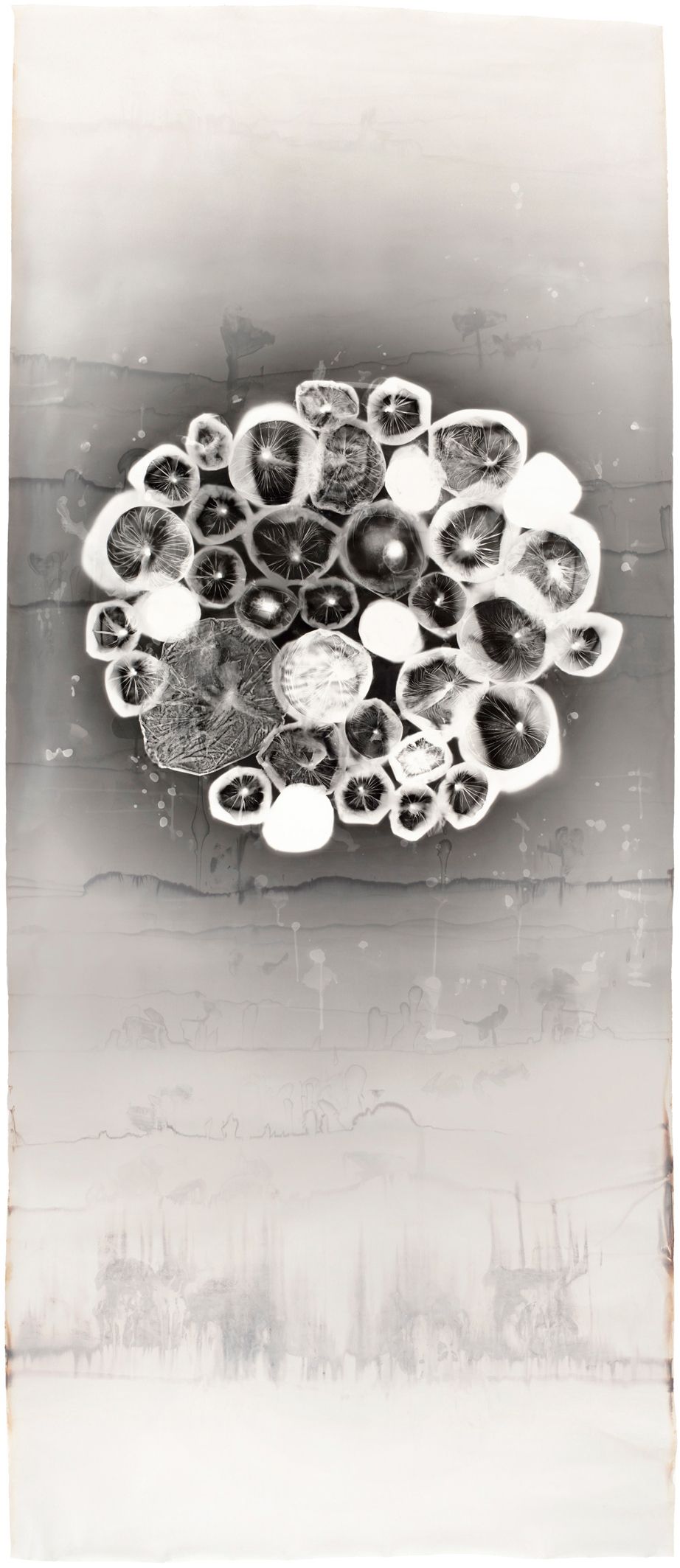Buoyancy, camaraless silver gelatin photograph, 2011, 115 x 50 ins. —