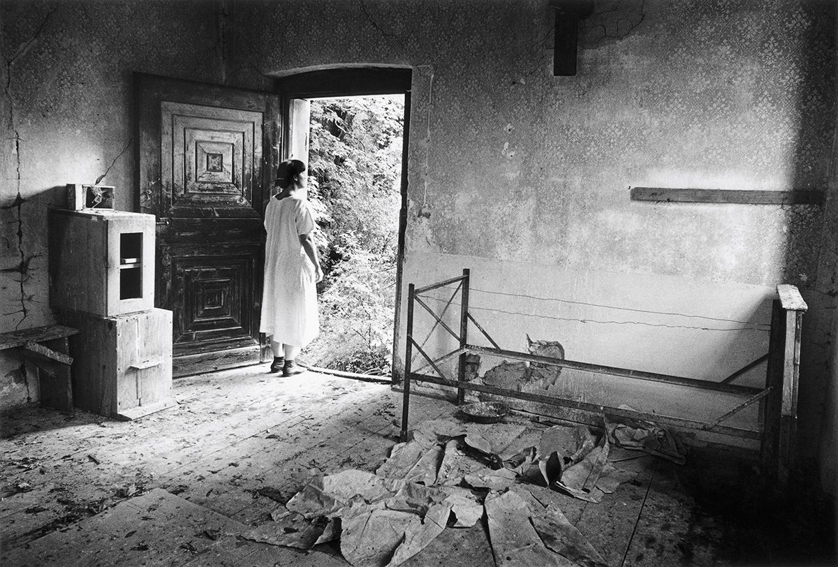 With each image, McDonald performs a different self into existence; and it is as if in performing one into existence McDonald is no longer what she was yesterday, nor the minute before, nor are we the same in looking, with the turning of each page, at the selves revealed to us. They present a Pandora's box of possibility—and all are real and true at once. The woman who casts her reflection into empty rooms, again and again like a vacated shell; the woman pushing against walls or pinioned by ropes or swinging like a pendulum through a mound of debris; the woman leaping off a hillside with the full force of her body as if she could defy gravity—so pure is her desire it seems she will succeed, vanishing into the open sky. McDonald neither dilutes nor disguises herself with a singular form. Confinement coexists with abandon, sterility with transformation, suffocation with flight, fragility with strength—she moves between all of these in her self-portraits, presenting a broader, more complicated sense of self.