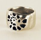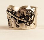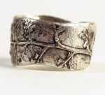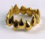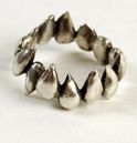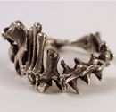 This is the first ring I made—I stitched apple seeds together and cast them—I was thinking about having a child and wanted to meditate on seeds and fertility of all kinds— but people see different things in it—flames, teeth, tears, a crown—