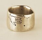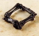 This ring is 4 small animals' arm, leg, finger or toe bones glued together, with some extra knee or hand pieces at the corners-this ring taught me that while we think of fingers as round, they are equally square at the knuckle.