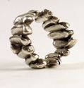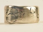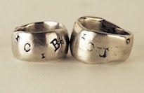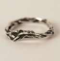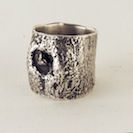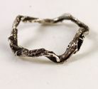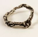 These are rings that I made by cutting out a section of a branch, casting it into silver, and hollowing it out—