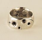 The top of this ring shows the sun and stars in the sky, if your fingers represent the atmosphere, then the stars become shooting stars as they pass through the atmosphere, and they become meteors as they land on earth, all of those states are present in this ring—.