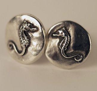 Prices: Most rings are $100 each (heavier items and larger sizes are $130), buttons are $50 each, and all earrings, necklaces, and cufflinks are $180 (heavier items are $200). All of the prices are for the pieces in silver, the price for gold plated would be more, and the price for solid gold would be related to the market price of the gold.