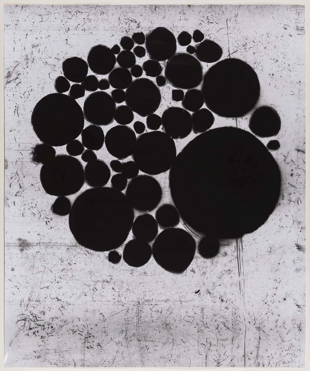 Cluster, cameraless silver gelatin print, 2018, 34 x 29 ins. —