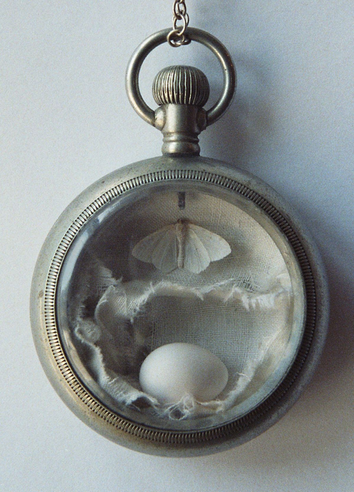 Dreaming of Flying, (hummingbird egg, moth, fabric) (not available) —